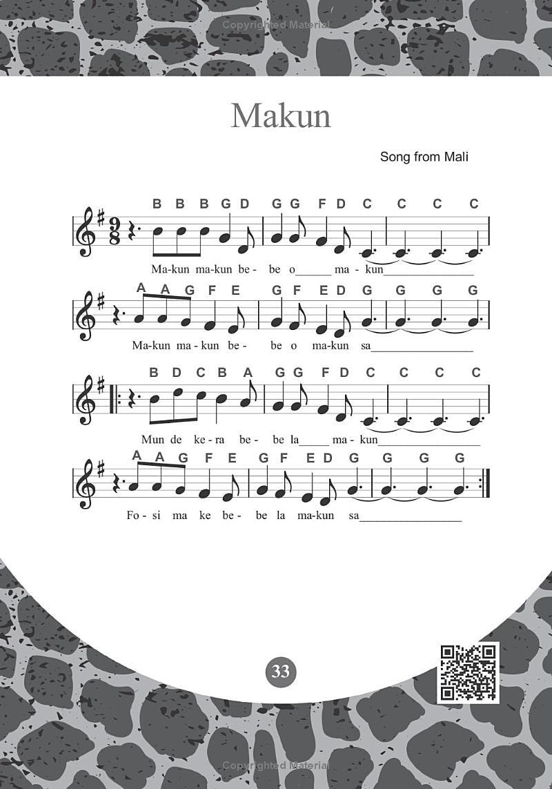 The African songs here are written using European notation, and it should be understood that songs cannot be written as authentically as the music is played in its original form.