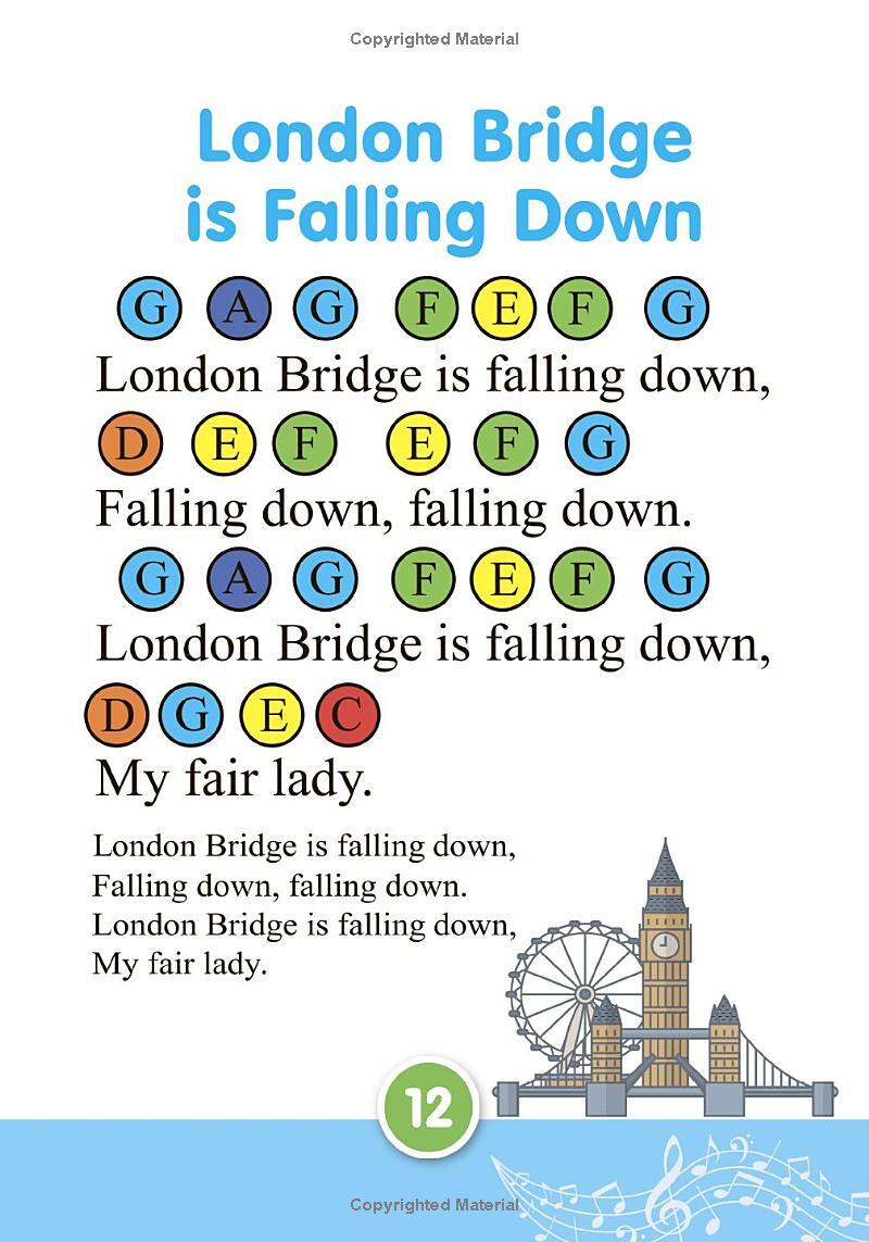 Every song has a large and simple, color and letter-coded visual, along with traditional sheet music. The instruction is designed so that children begin with simple circles and gradually advance to reading notes using sheet music. I try to make this transition as easy as a game, where children advance to higher levels themselves.