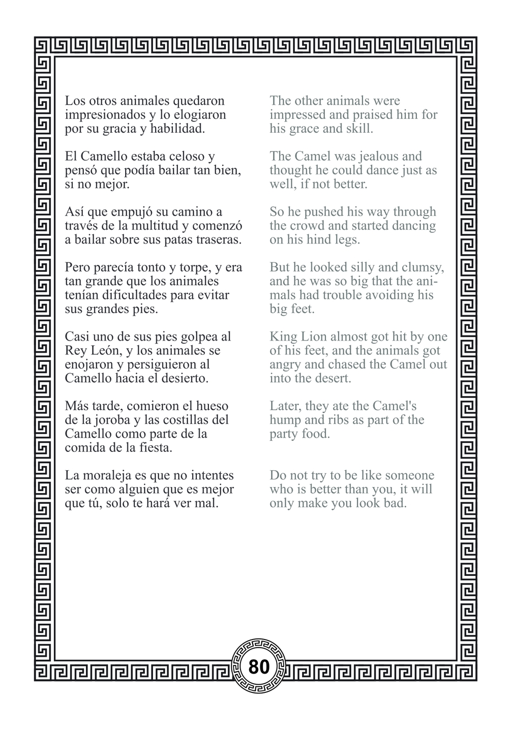 This illustrated book contains a collection of classic ancient tales, presented in a bilingual edition, that is perfect for those learning Spanish or English. With 137 stories and parallel translations, it provides students at any level with a chance to expand their vocabulary without needing to refer to a dictionary all the time. With this format, each Spanish sentence is accompanied by its English translation on the same page, making it easy to compare and understand.